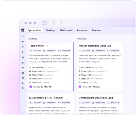 I have used 99.9% of all the CRM and ATS systems available to third party recruiters over the course of my 26 year career in recruitment. Atlas is by far the best thing to happen to the industry in a long time. All the things that slow you down as a recruiter are taken on by Atlas, freeing you up to make waves in your niche. Many firms have scrambled to bolt AI on to their systems. Atlas has AI baked in, it is literally in the DNA of the system and it is evident in every aspect of the system. I can’t recommend Atlas highly enough.