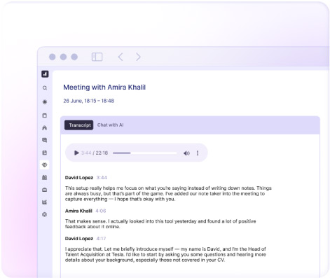 - Easily revisit past interviews to prep for follow-ups