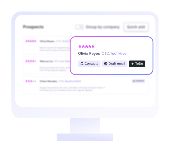 Your BD assistant scores deals based on real interactions with prospects and alignment to your go-to-market playbook. It highlights the signals that matter so your team can prioritize active outreach, forecast the pipeline more accurately, and focus on the deals most likely to close.