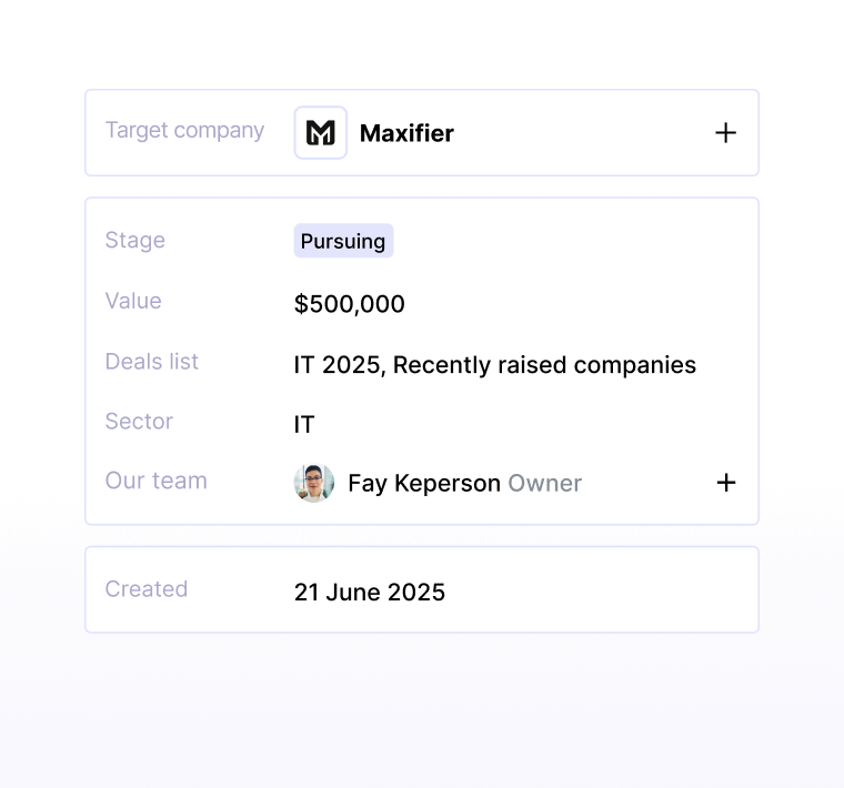 Your team already knows what a good deal looks like. Atlas takes that knowledge and builds it into your workflow. You define the signals, stages, and outcomes that matter most. The BD assistant then scores opportunities based on how well they align to your proven approach, so your whole team benefits from your best thinking on every deal.