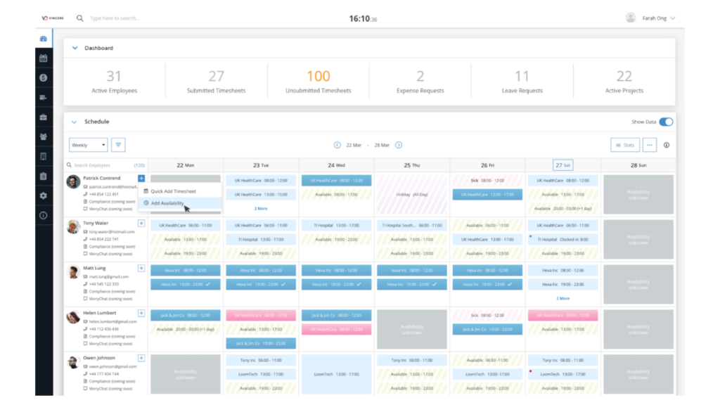 Vincere is a front-to-back office recruitment platform built for agencies seeking an all-in-one system when evaluating Loxo alternatives. It combines applicant tracking, recruiting CRM functionality, time management, and invoicing within a single platform, which can help reduce reliance on multiple tools across recruitment and operations.