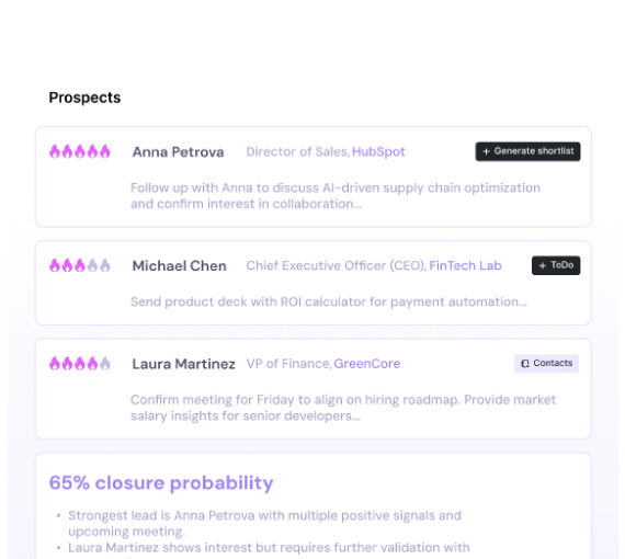 Atlas analyses, ranks, and scores every executive search opportunity in your pipeline in real time. It evaluates client urgency, search momentum, and placement potential, then highlights the mandates with the strongest likelihood of converting.