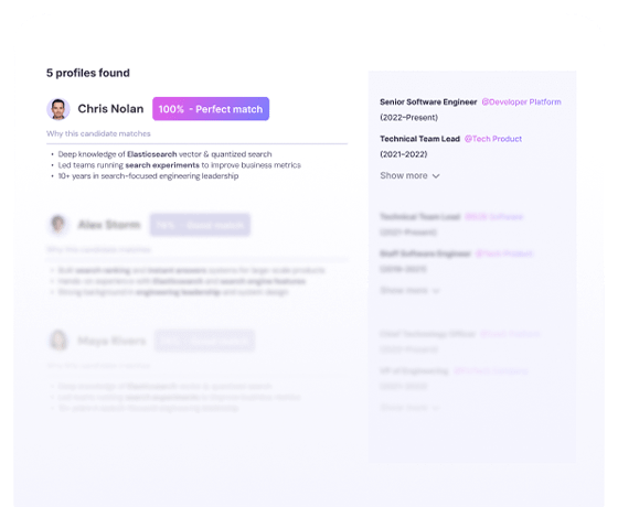 This depth means recruiters are no longer limited to surface-level data. Atlas understands experience, context, and real-world evidence, helping you uncover candidates who may never appear through traditional search alone.
