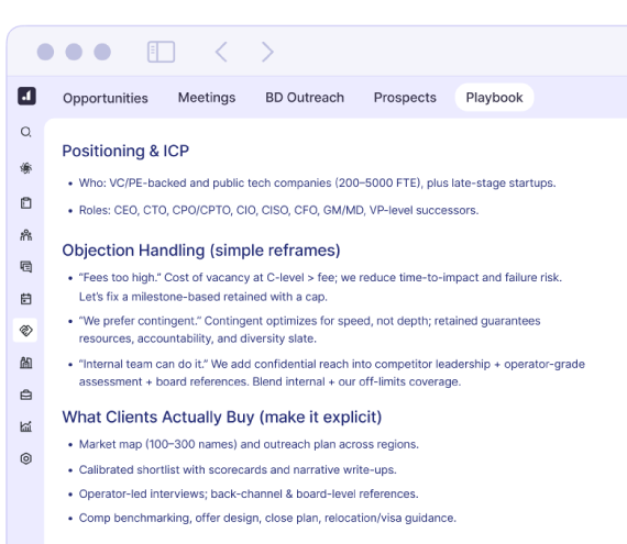 Stay focused on activities that win more clients and candidates. Your playbook acts like a built-in coach, showing you the most effective actions to take at each stage of the recruitment process.