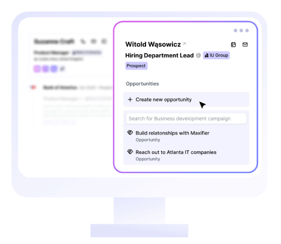 Create, update, and manage opportunities without leaving your browser. The Chrome extension syncs every action directly into Atlas, keeping your pipeline up to date while you work on the web.