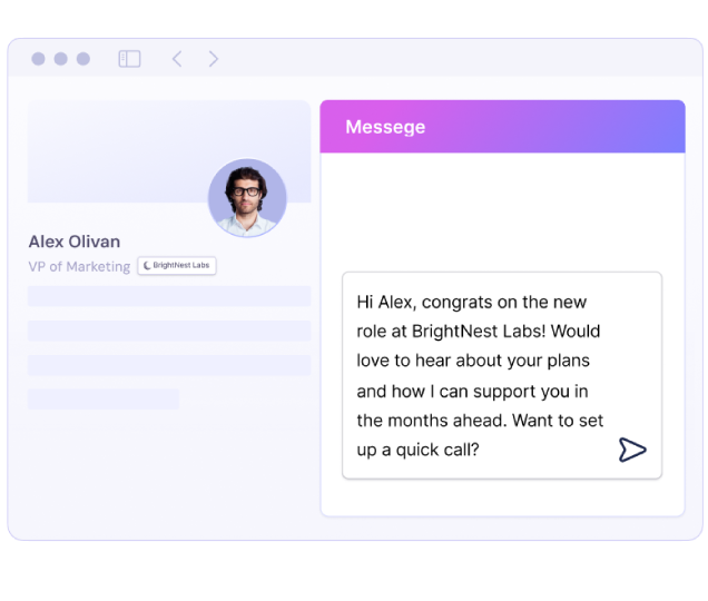 Job changes aren’t only data points. They’re natural touchpoints to reconnect and start new conversations. Atlas can automatically draft a message when someone moves roles, congratulating them and inviting them to catch up. It’s a smart, timely way to stay top of mind and uncover new hiring needs as they settle into their next challenge.